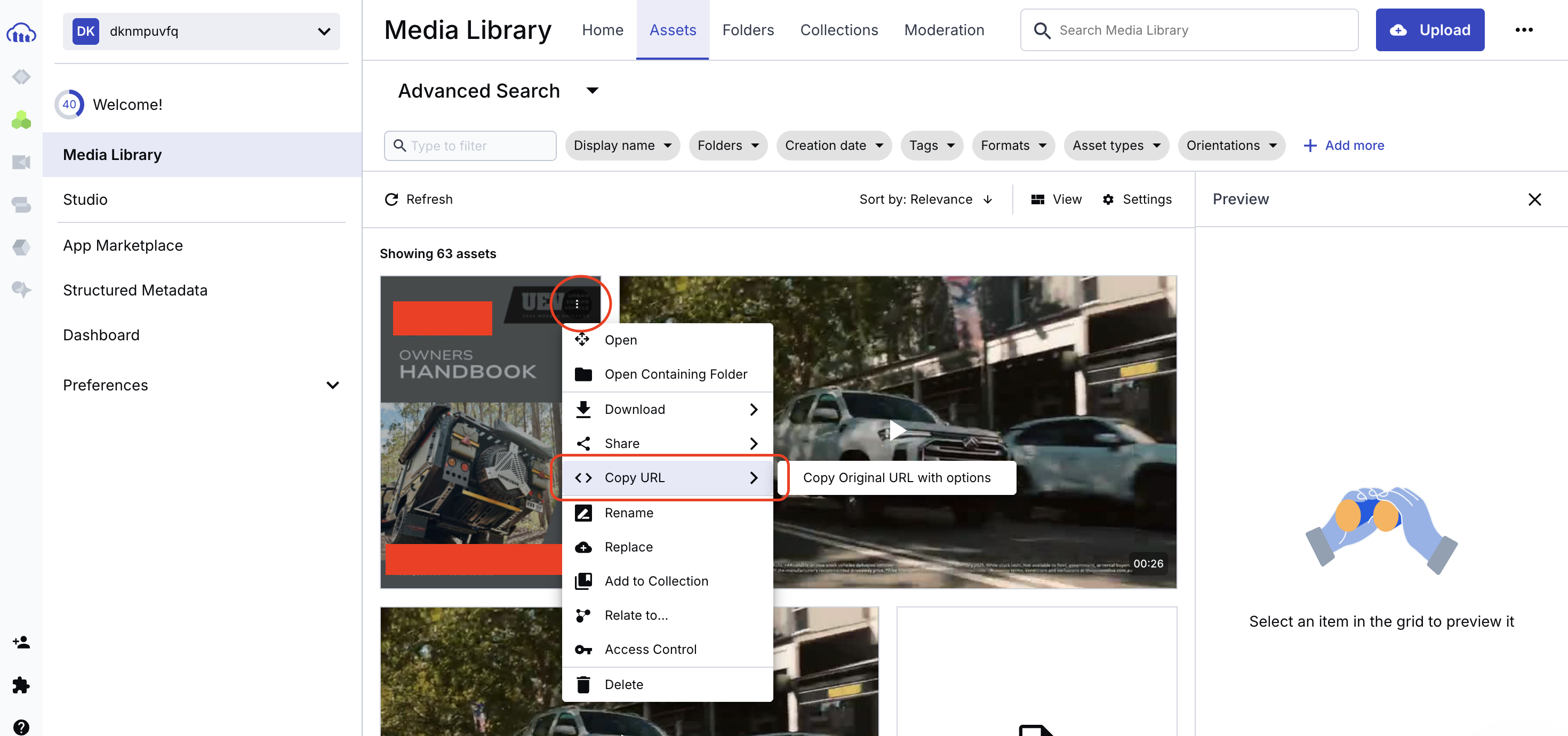 From there, access the drop down menu available on your upload, its in the format of 3 dots and will appear when you hover over the file.