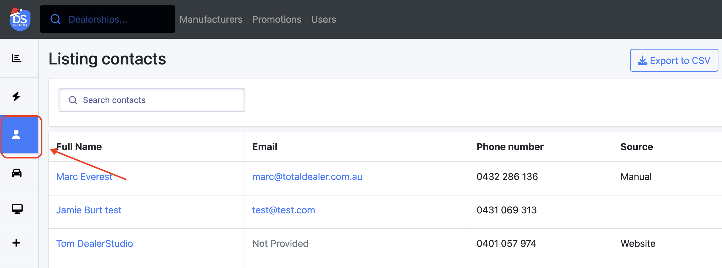 The Customer Tab provides a detailed view of all your contacts. Information is organised by full name, email, phone number, and source, allowing you to easily access and manage your customer data.
