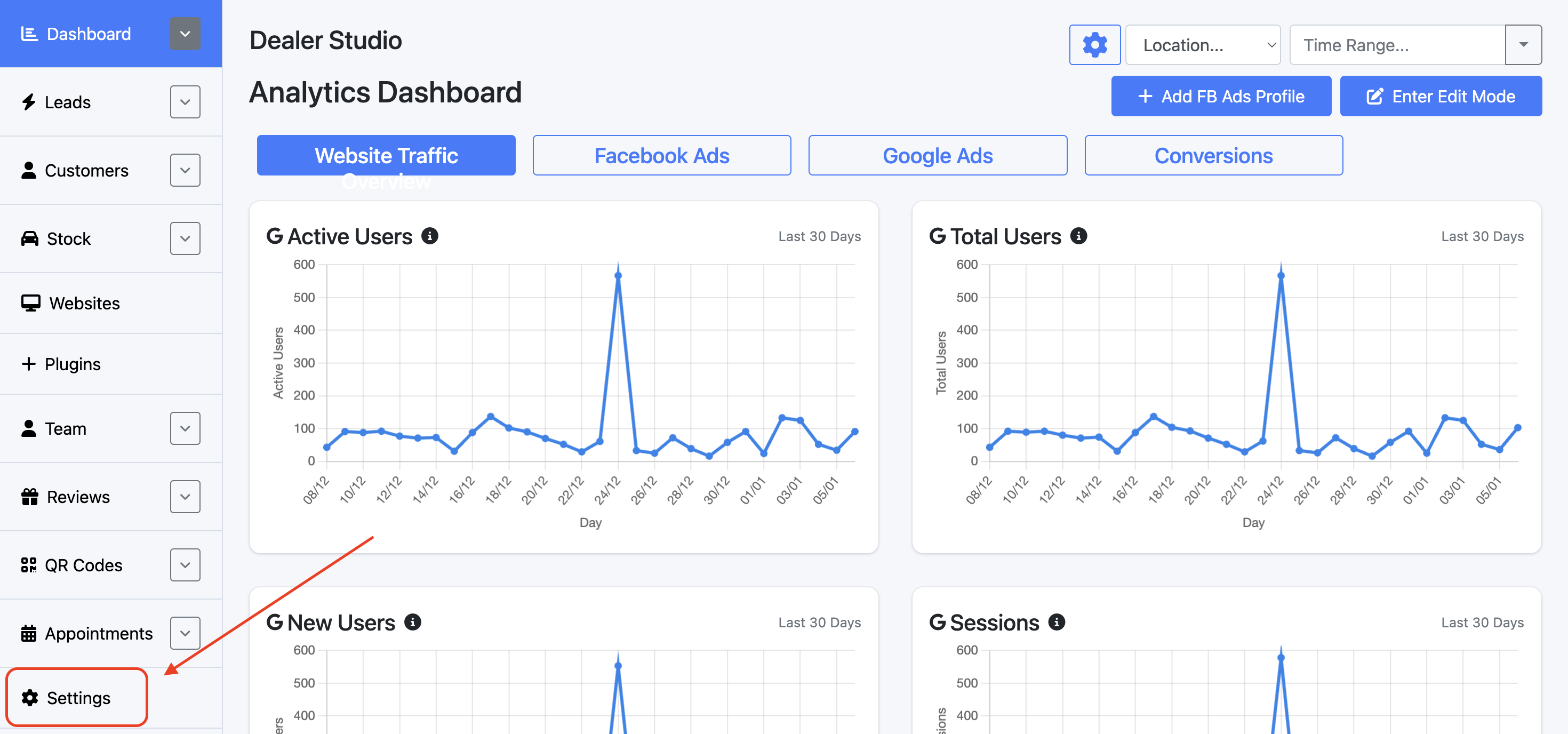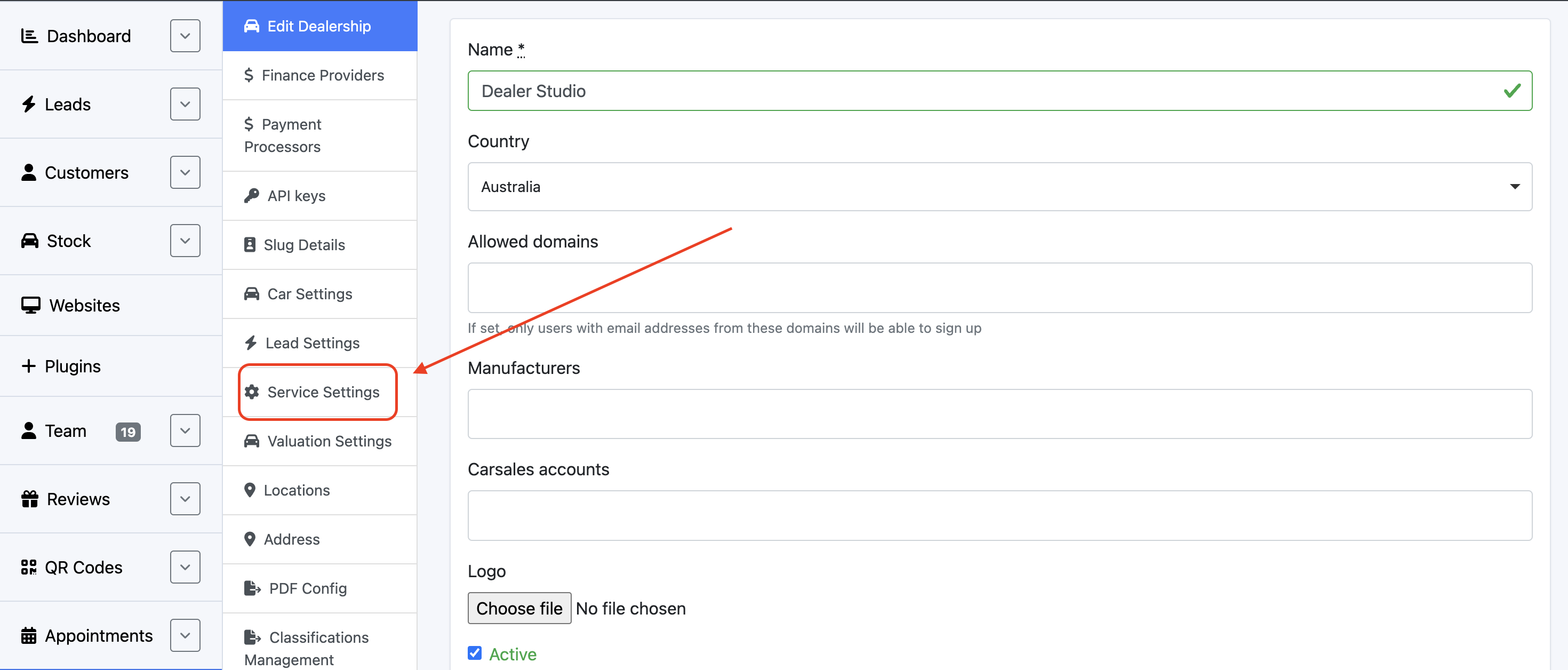 Step 1: Open the Dealership Dashboard and select Settings