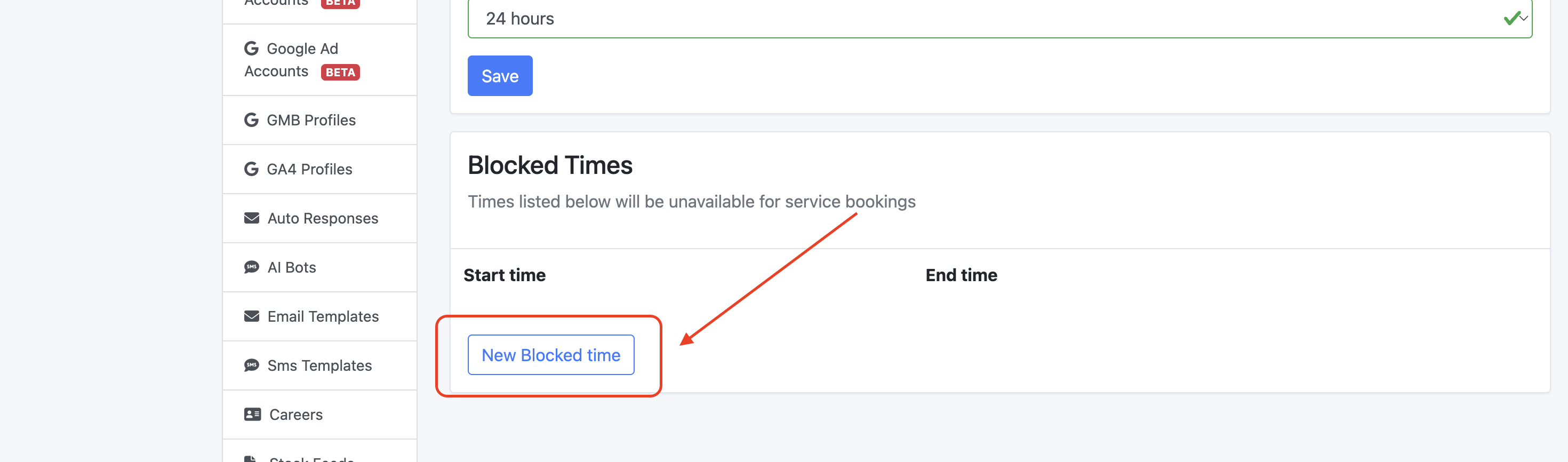 Step 3: Scroll down and select New Blocked Time