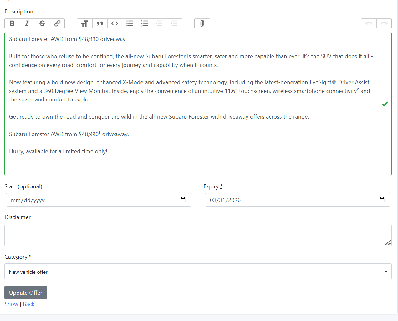 This guide will walk you through the process of creating special offers for your website. Special offers are a powerful way to attract customer attention, promote seasonal deals, highlight new stock, or showcase limited-time promotions.