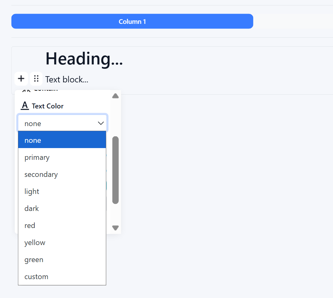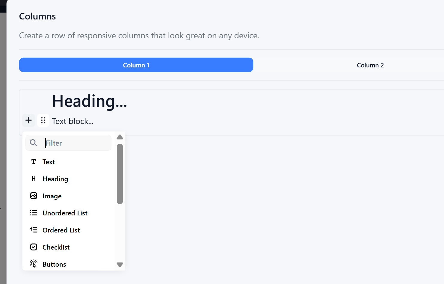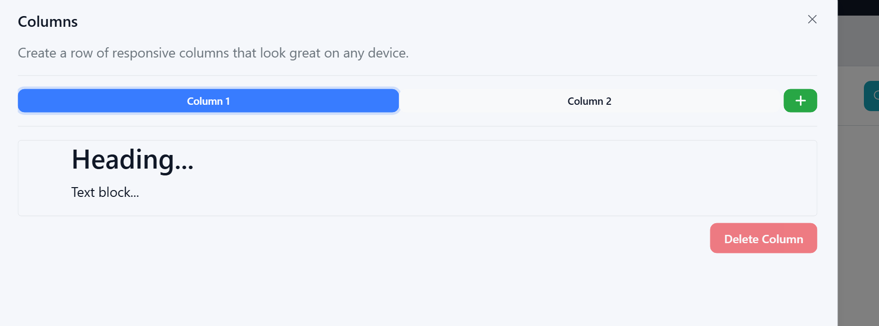 A box will open to customise your columns. To add text, simply highlight the Heading or Text block... and begin typing.