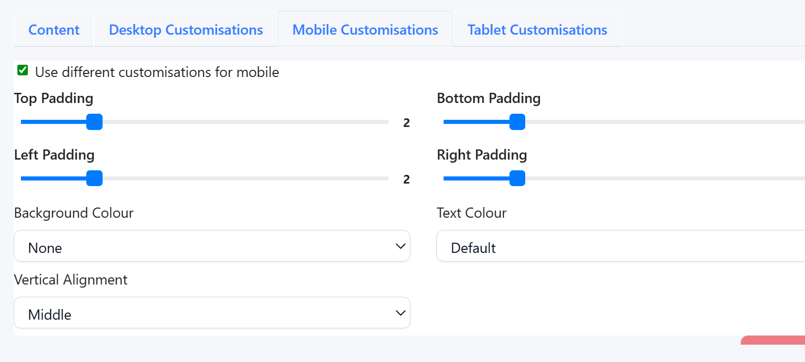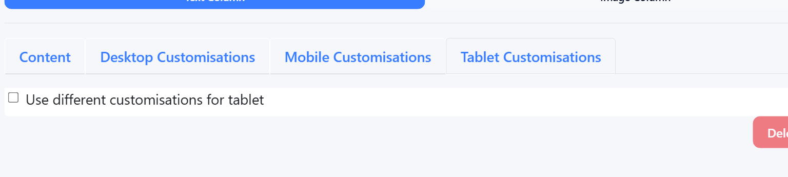 You can amend custom desktop, mobile and tablet customisations in the same way as the text column.