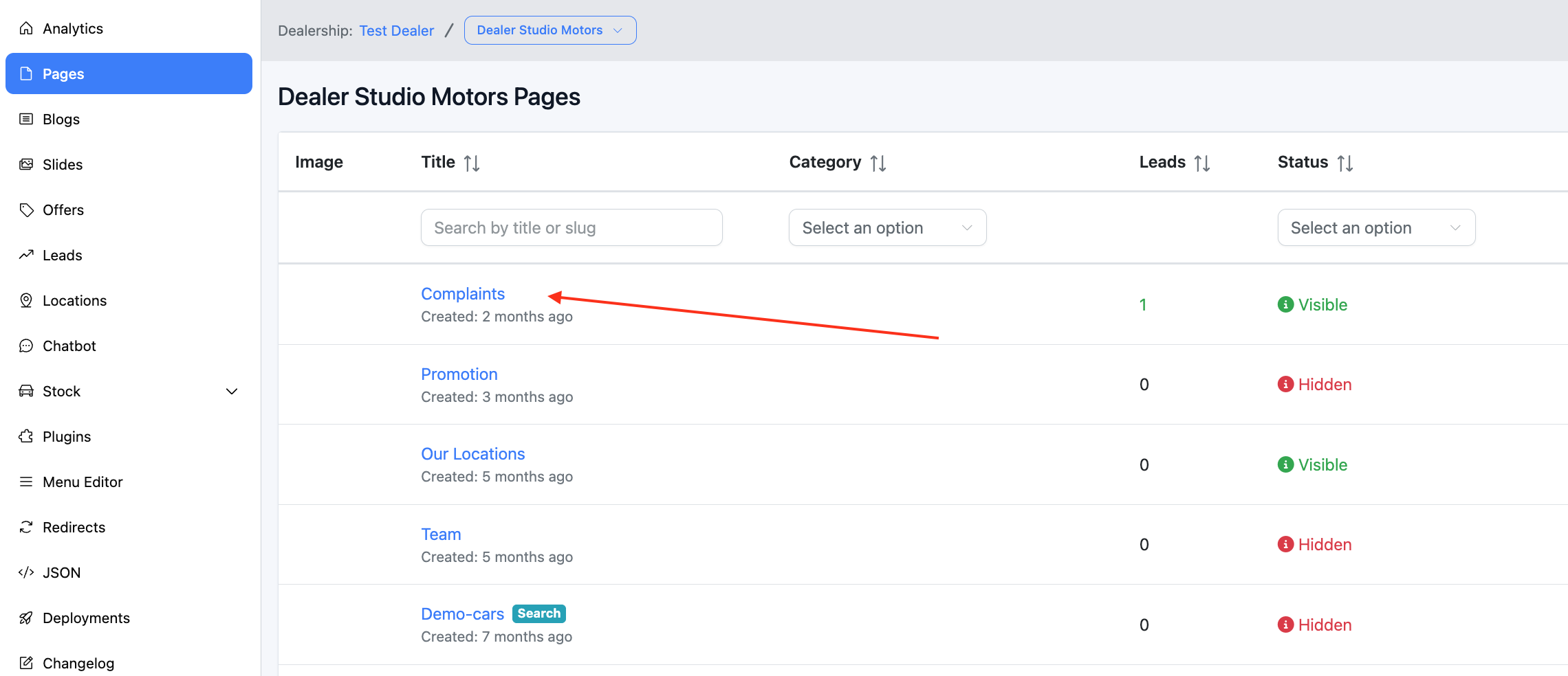 Select the page you want to edit