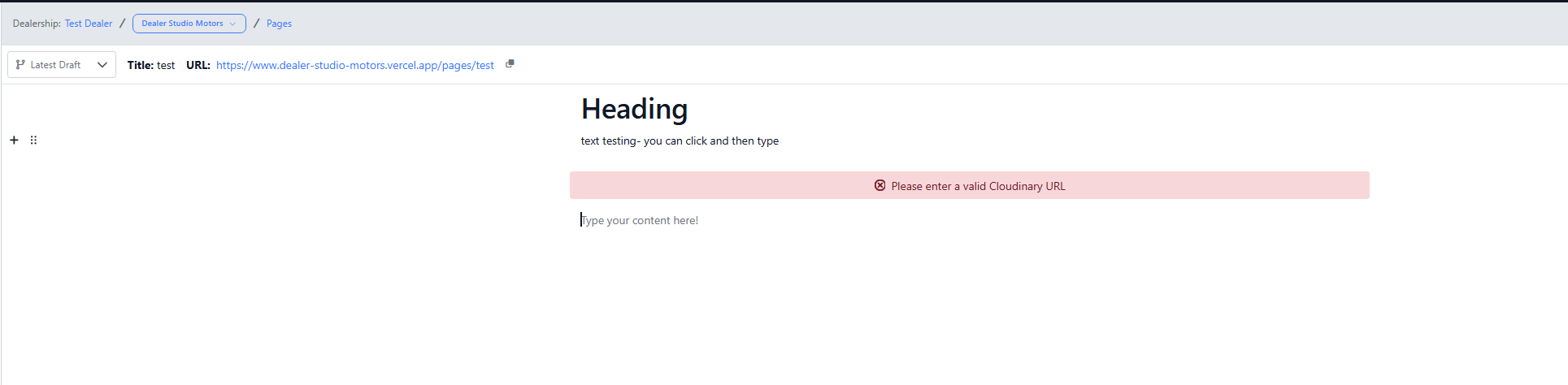 Enter the Cloudinary URL