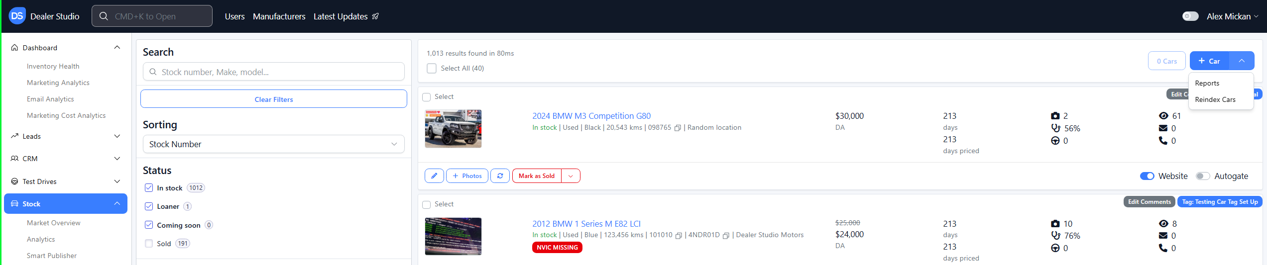 #Step 1: On the Dealership Dashboard, select Stock on the Left-hand menu