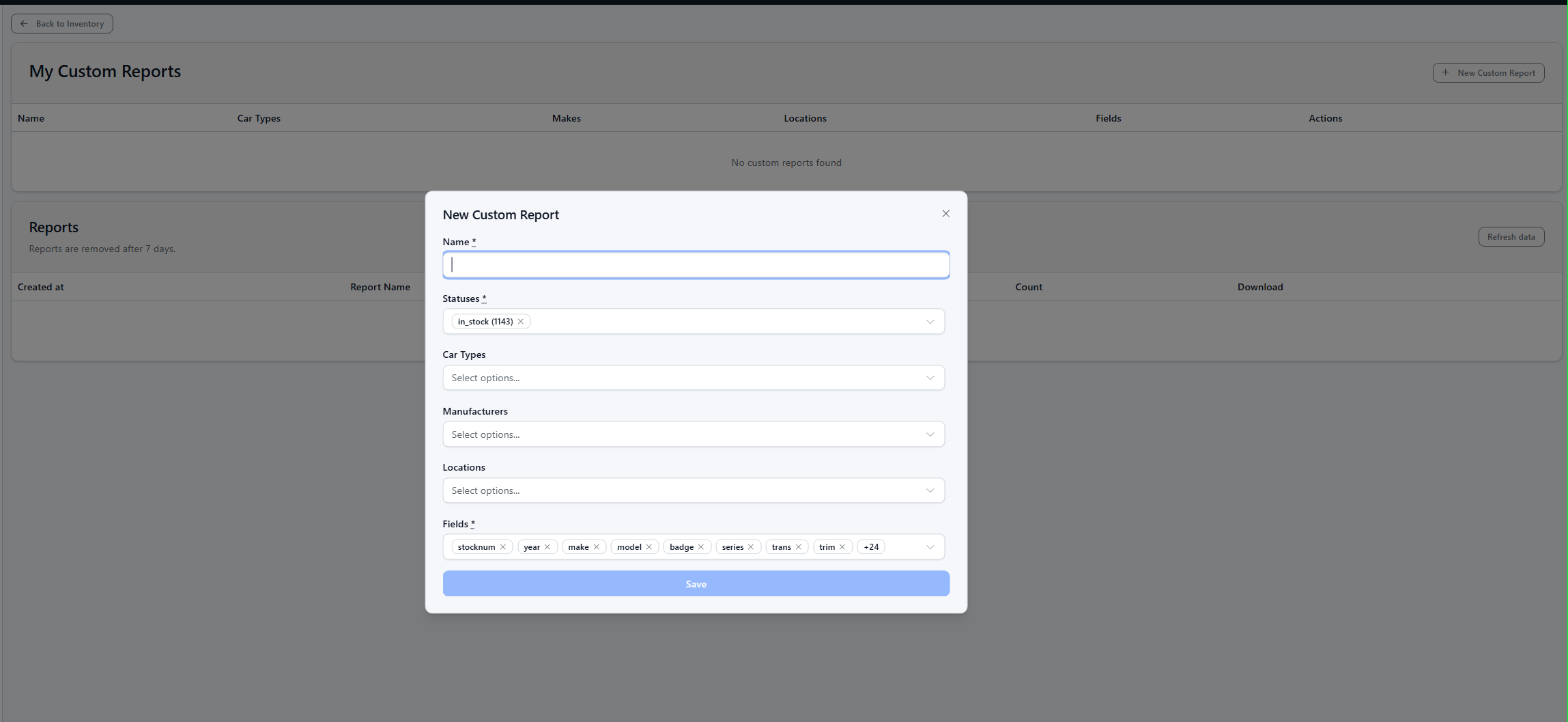 - Name: Enter the name of your report e.g. ‘Used Vehicles [Location name]’.