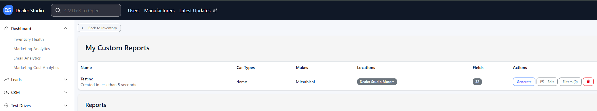 #Step 2. In the top right, use the arrow next to "+Car" to access Reports.