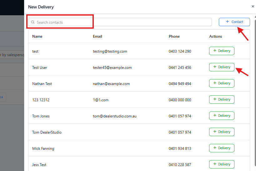 Once the customer is selected, click + Delivery to proceed.