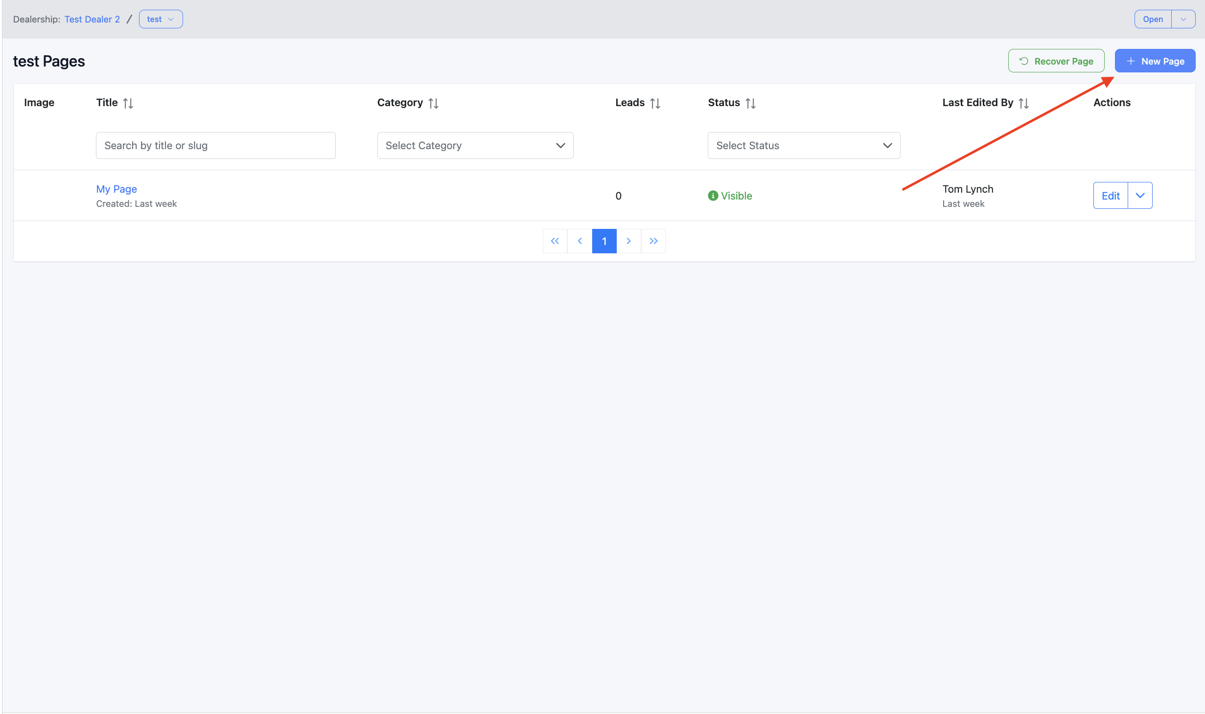 2. Create new page