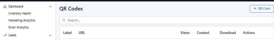 The QR Code Dashboard in Dealer Studio allows you to easily generate, manage, and track QR codes for a variety of purposes. Whether you're promoting social media channels, sharing product or service information, linking to sign-up forms, or collecting customer feedback, QR codes offer a convenient and engaging way to connect with your audience.