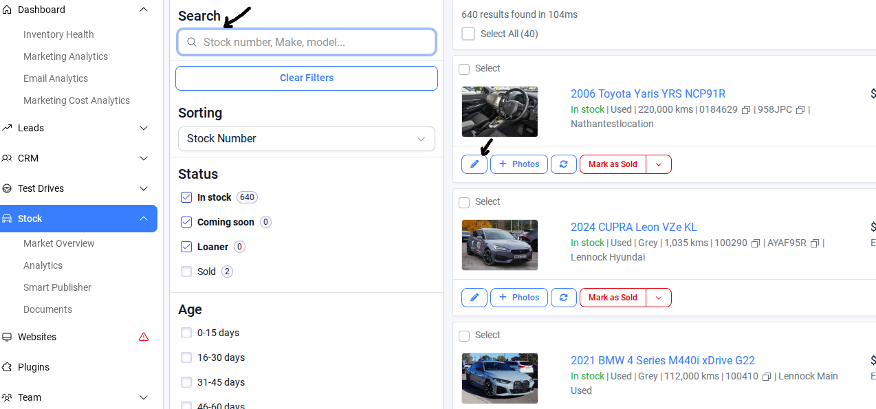 To manage vehicle availability, update its status in the inventory system. Set the status to Reserved to hold the vehicle for a customer, or switch it back to Available to make it open for sale. Proper status management ensures accurate inventory tracking and smooth sales operations.