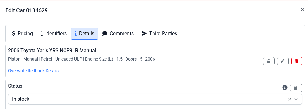 Go to the Details section in Edit Car