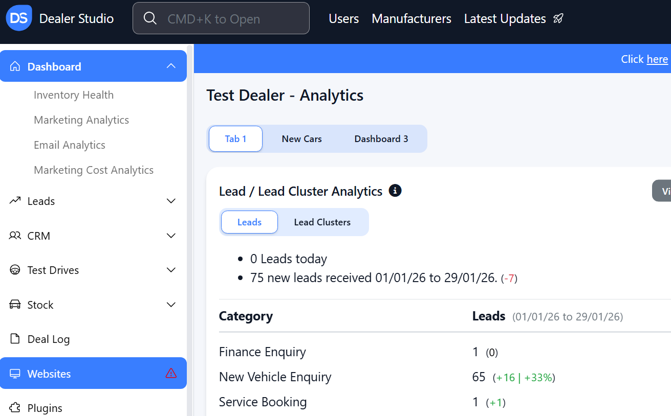 Step 1: On the Dealership Dashboard, select Websites
