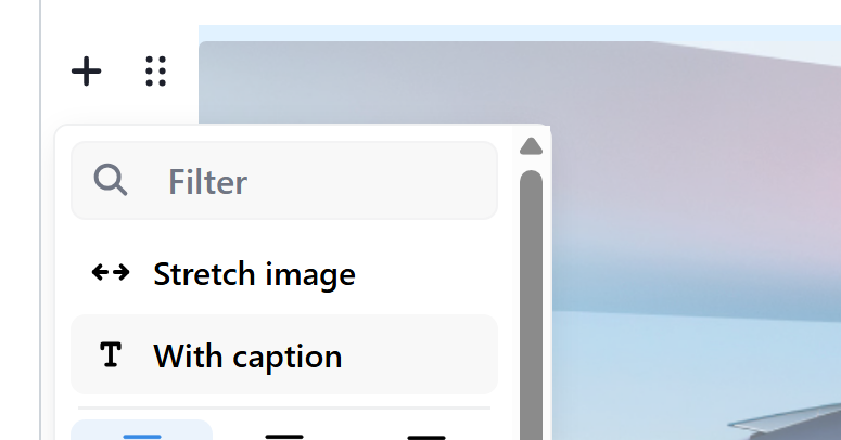 1. Hover where you want the image to be until the '+' appears;