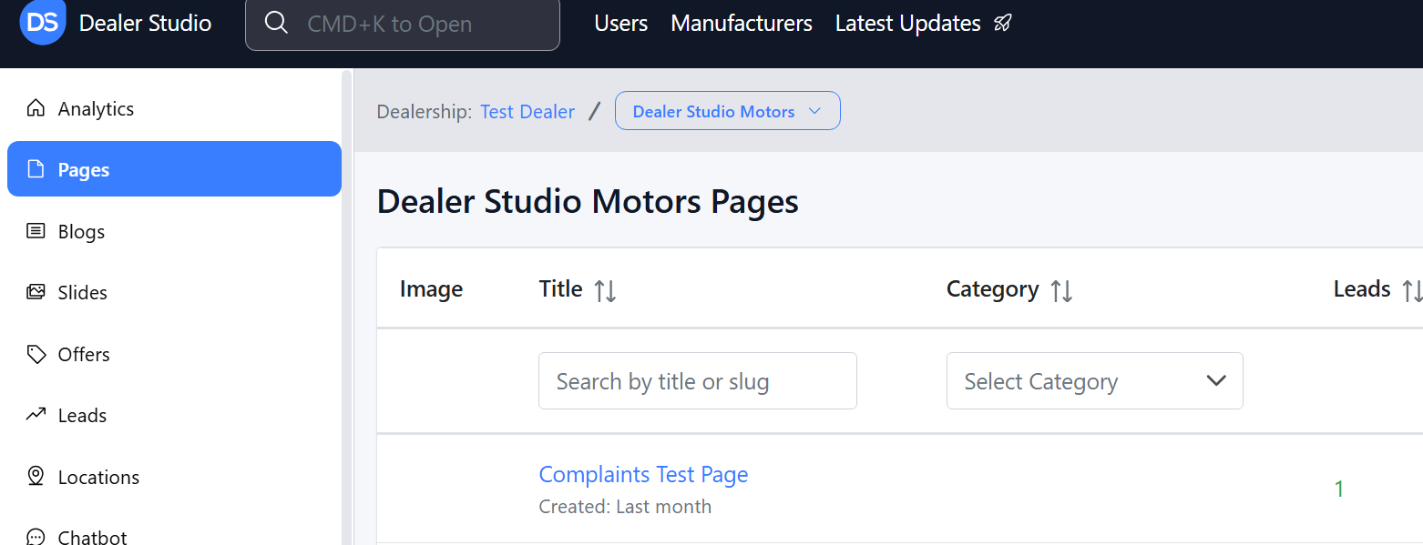 Step 1: On the Dealership Dashboard, select Websites