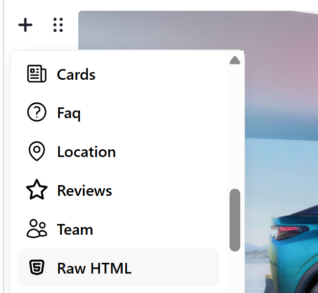 How to add Raw HTML in the Pages Editor