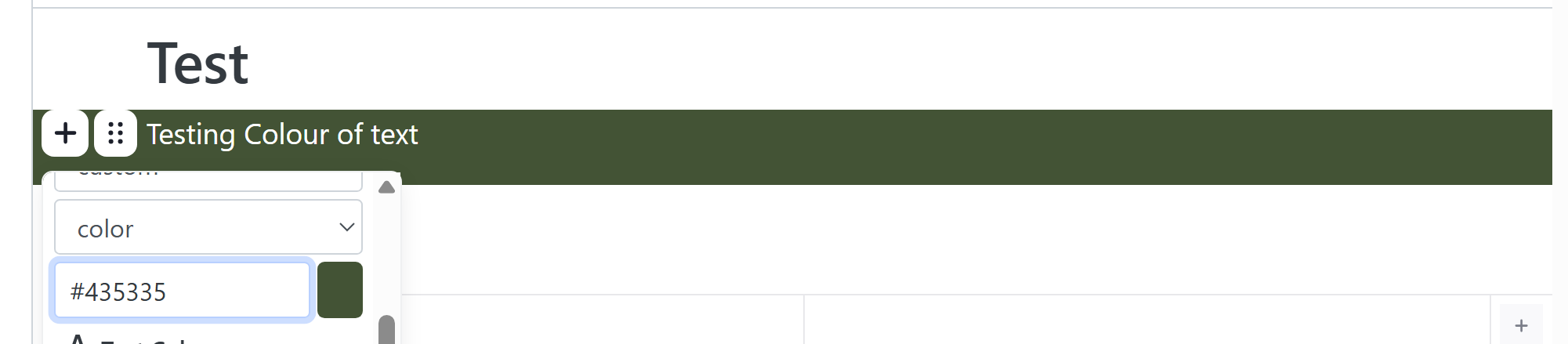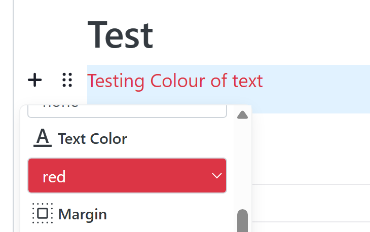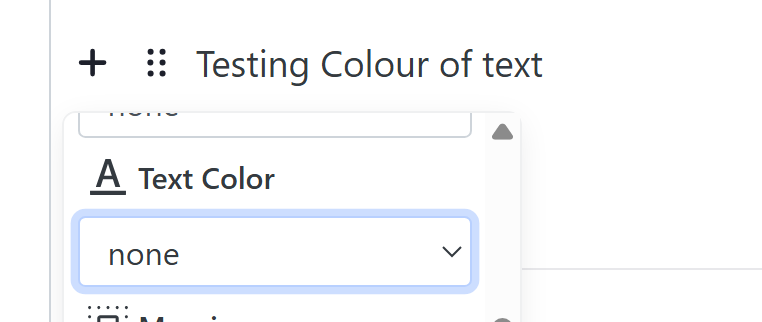 2. Hover over your text until the 6 dots appear, then scroll to 'Text Colour'