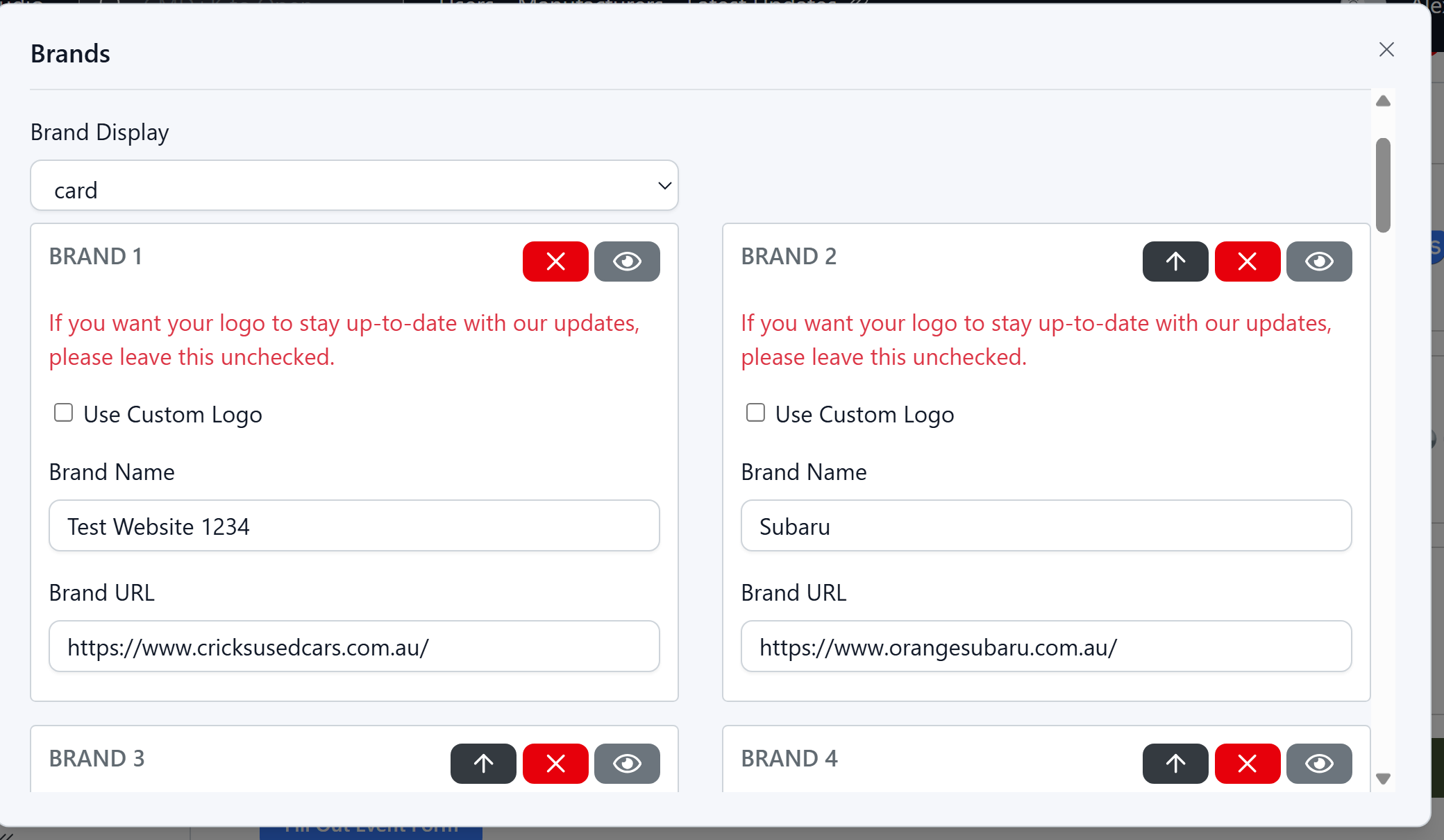 6. You can also change Logos, Name or Links under your corresponding Brands