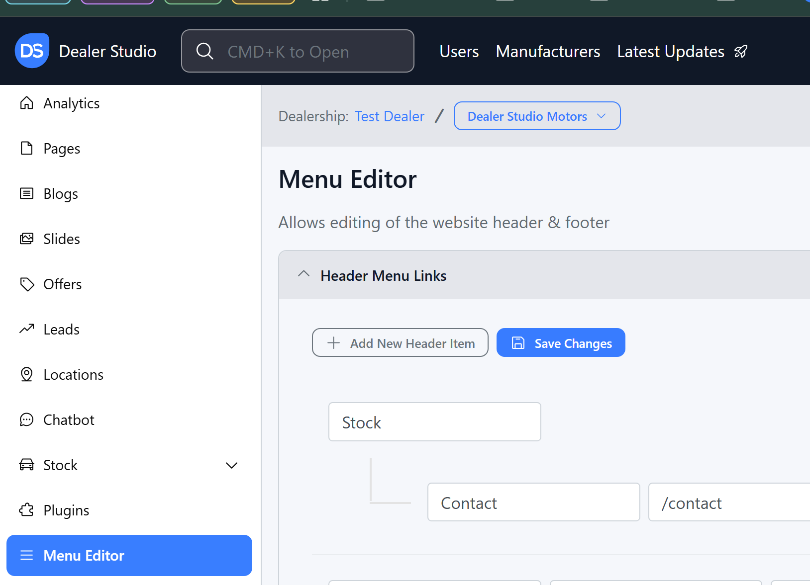 Step 5: Banner settings are avaliable to edit, this edits the phone numbers or addresses along the top of a dealership;