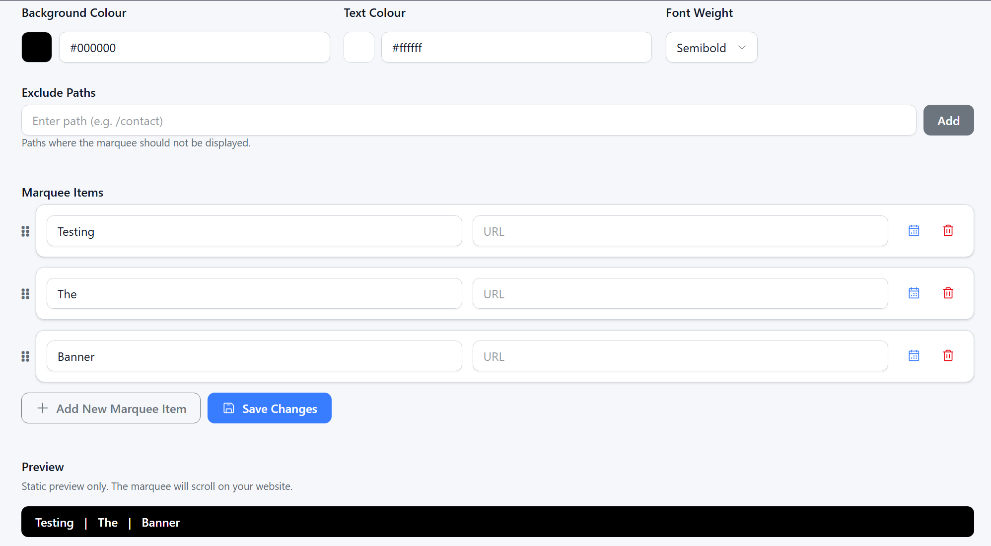 Step 6: The Final Item you can edit is 'Marquee Settings'