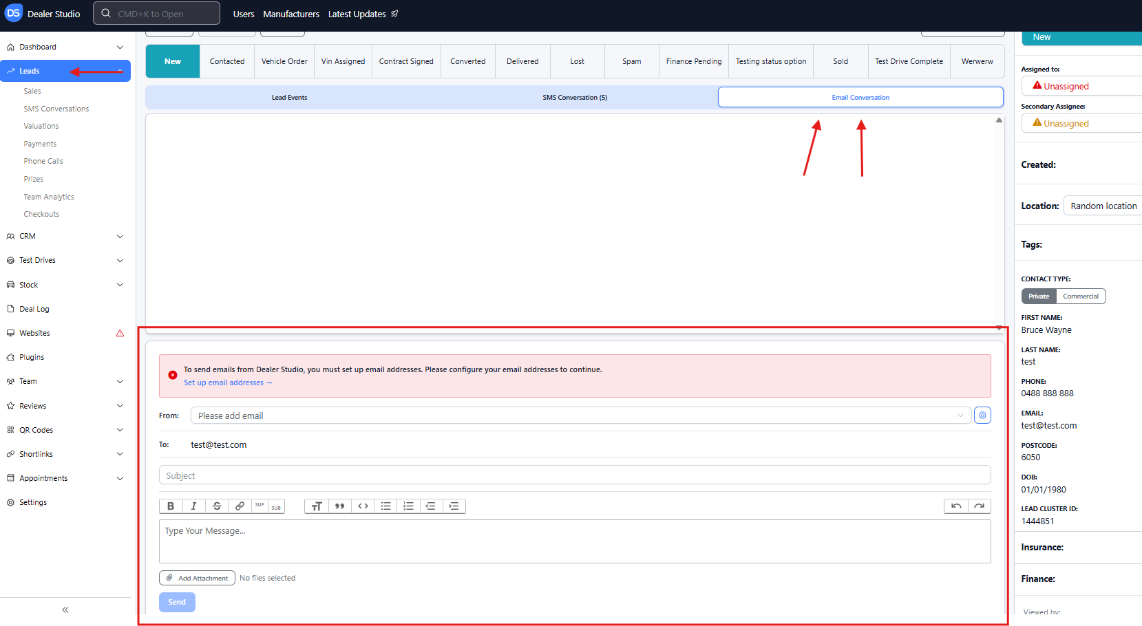 Step 5: Send a Test Email (actioned by the Dealership)