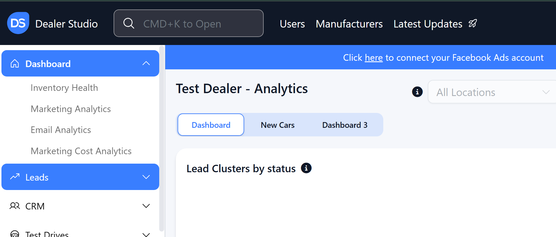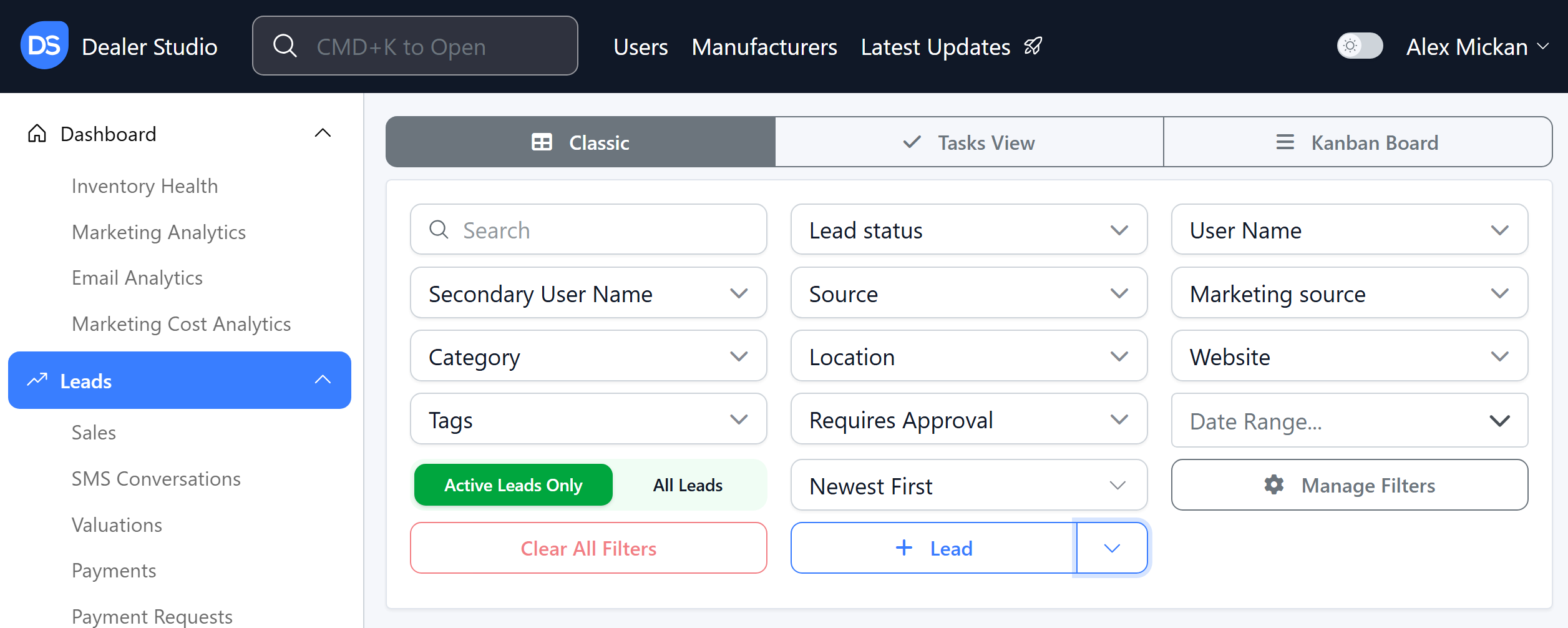 Step 1: On the Dealership Dashboard, select Leads on the Left-hand menu