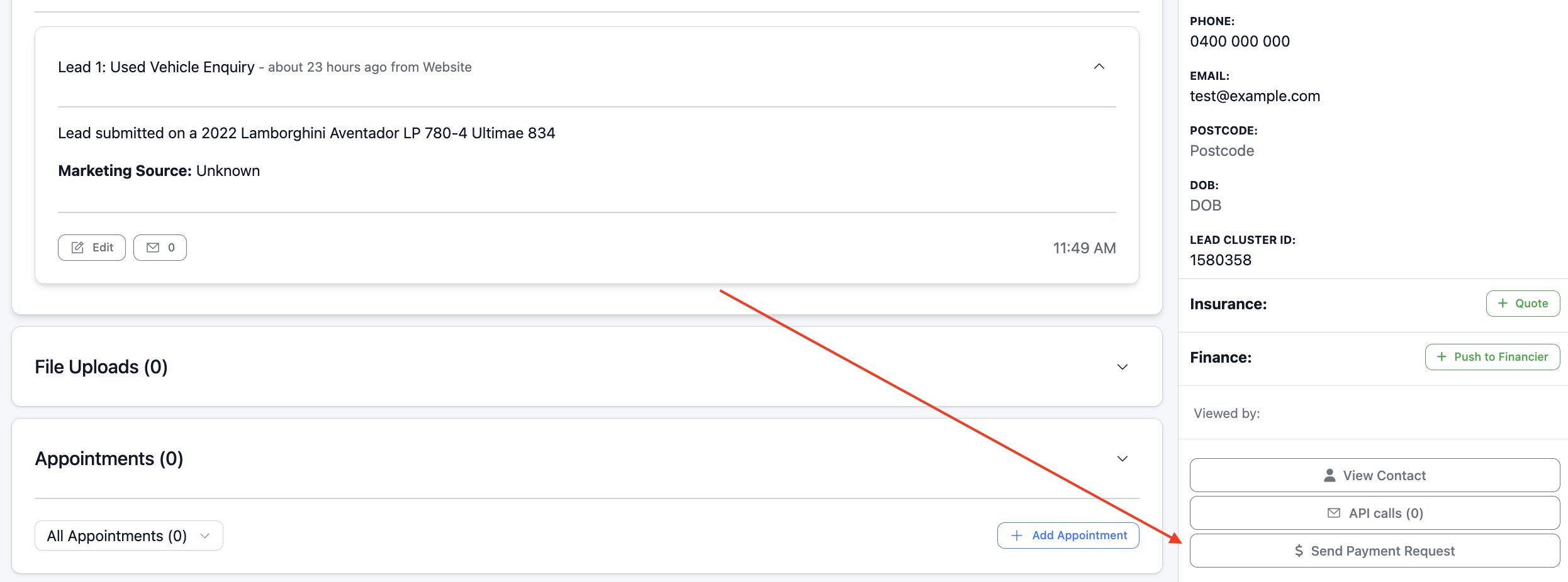 Navigate to the lead and generate the deposit request