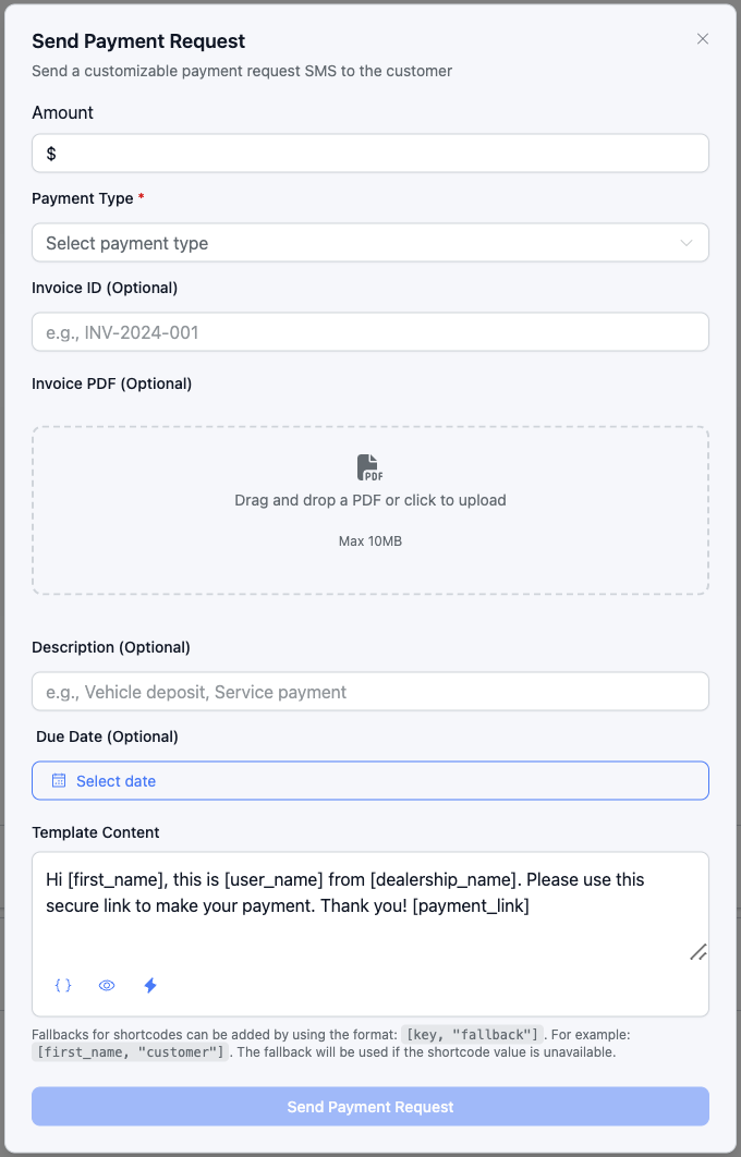 Click on Send Payment Request.