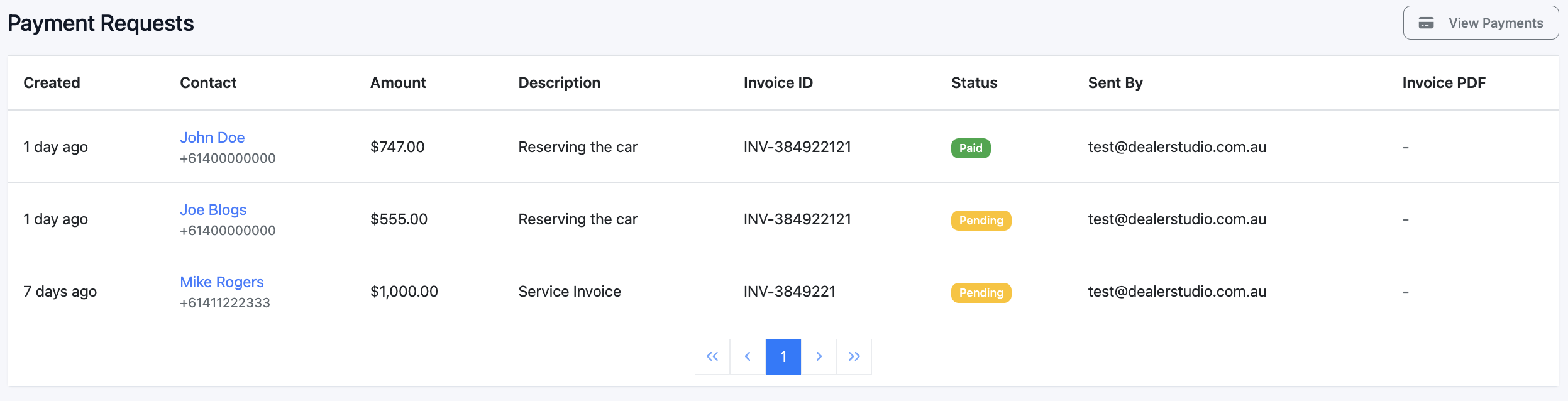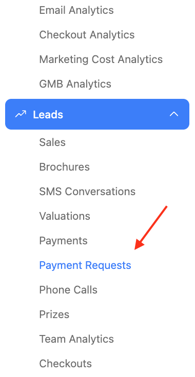 To see the requests that have been requested and their status, use the sidebar to navigate to Payment Requests.