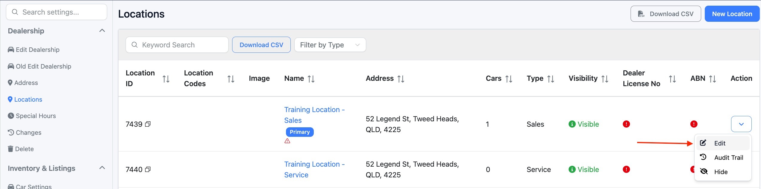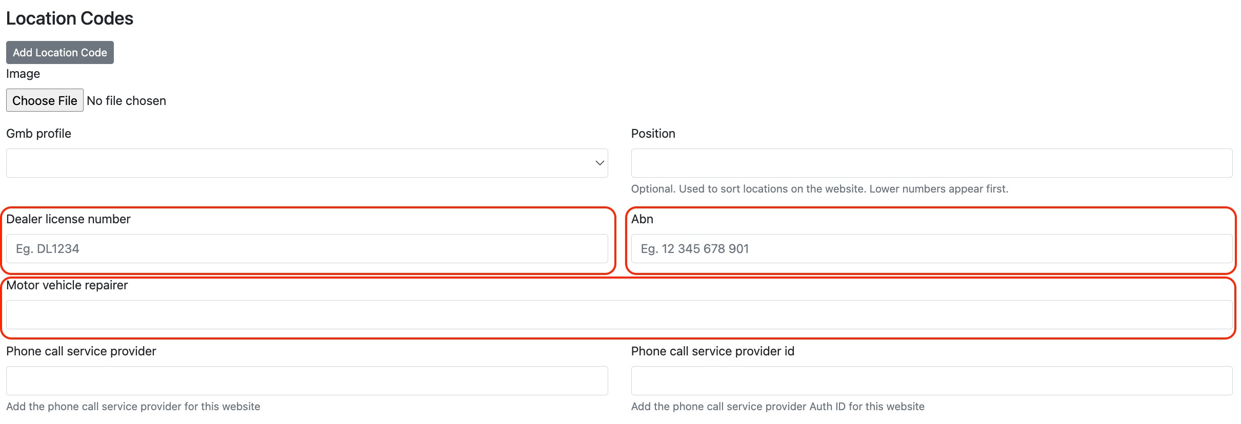 You can add your Australian Business Number (ABN), Motor Vehicle Repairer Licence (MVRL) or Motor Dealer Licence (MD/DL) directly within your Location settings.
