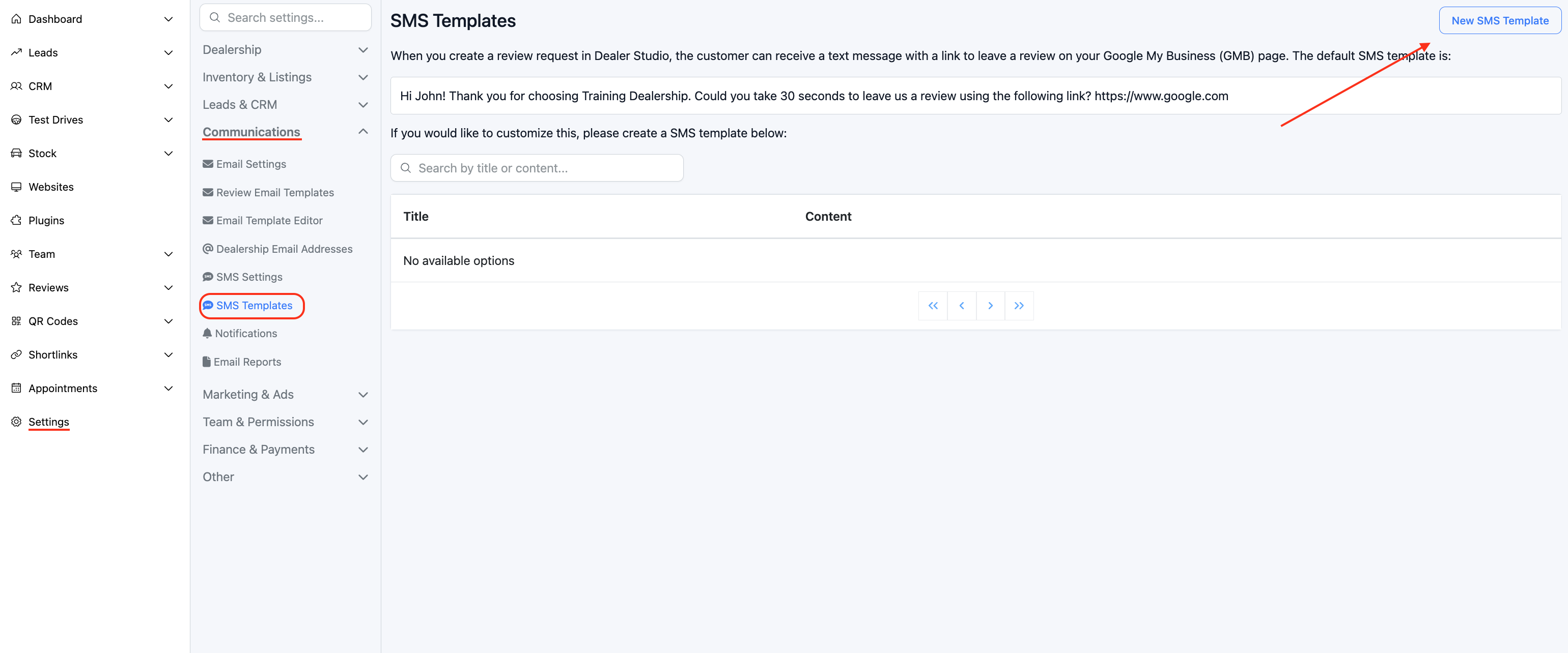 Step 1: Access SMS Templates