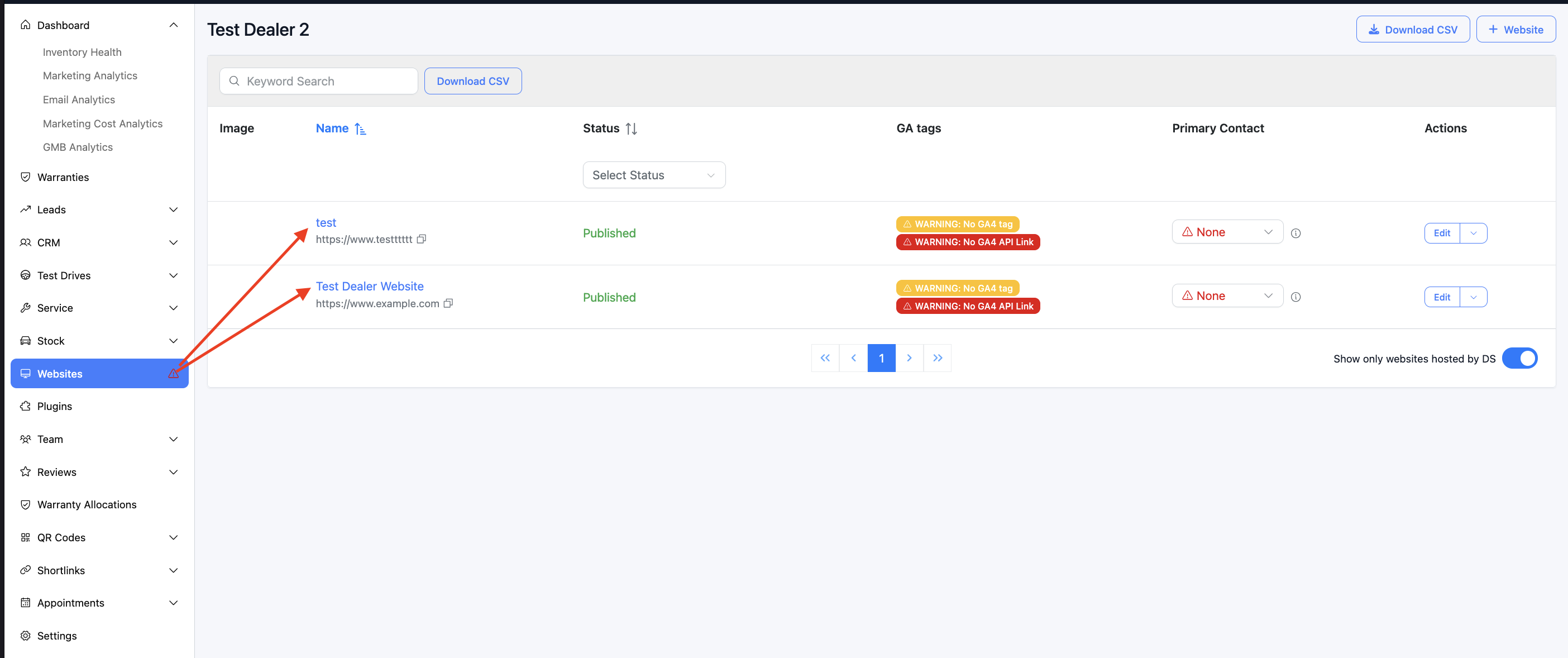 If you are on the dealership level we need to navigate to the website level