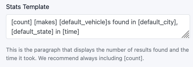 - Same variables, e.g. Looking for [make] [default_vehicle]s? Browse [count] …