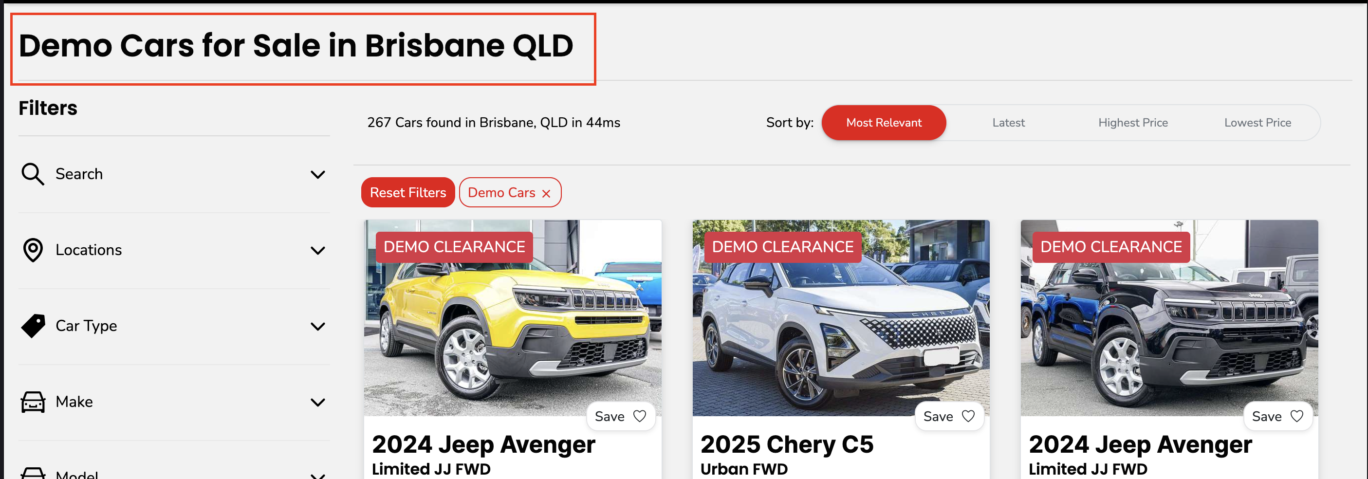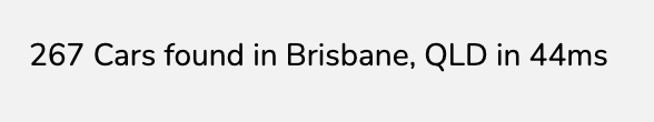 - Stats line (e.g. “42 Toyota cars found in Sydney in 77ms”)