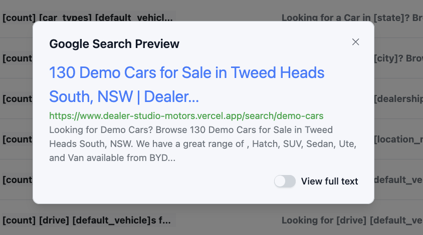 - Preview: Use SEO Preview to see how one example page will look in Google.