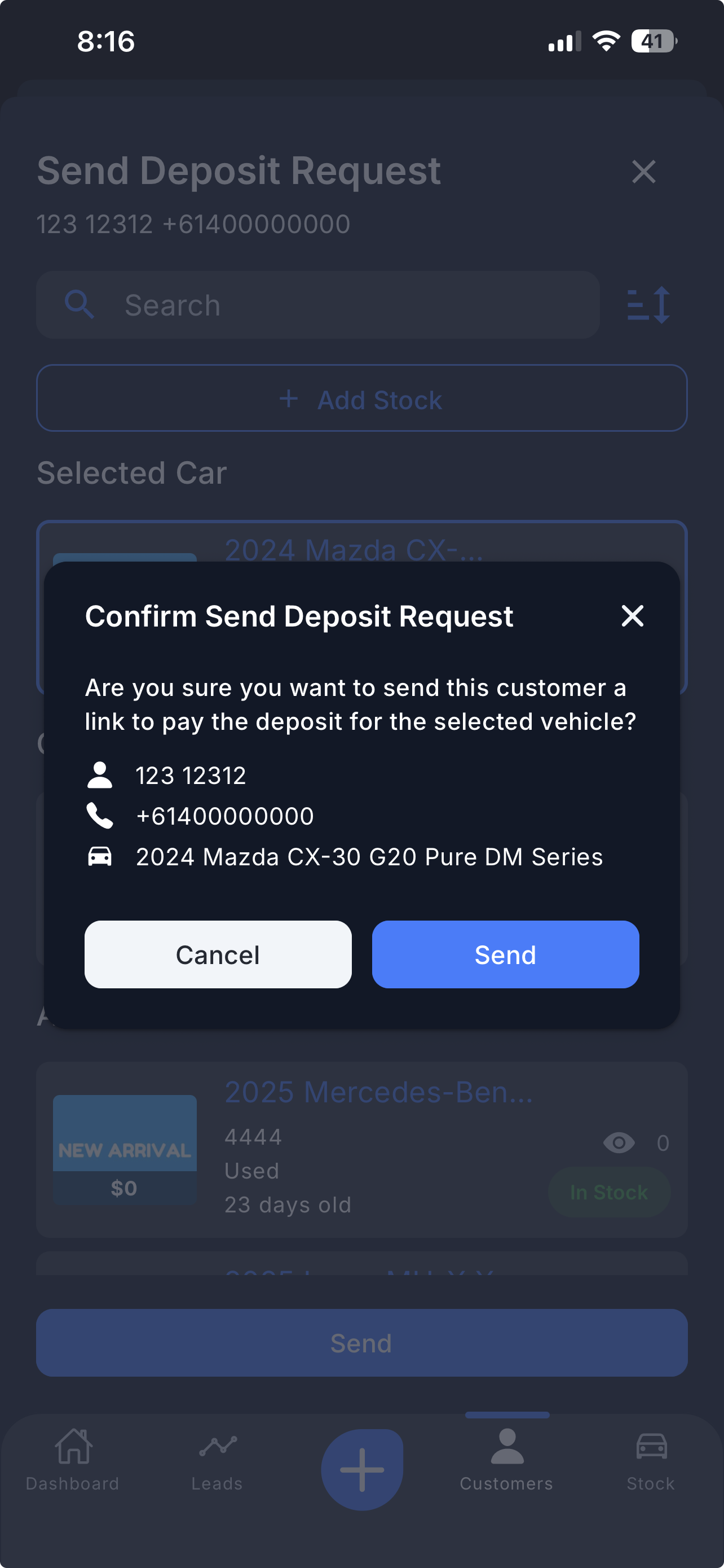 This article explains how to send a Payment Request to a customer using the Dealer Studio mobile app. Follow the steps below to locate a customer, send a payment request, and verify it was successfully delivered.