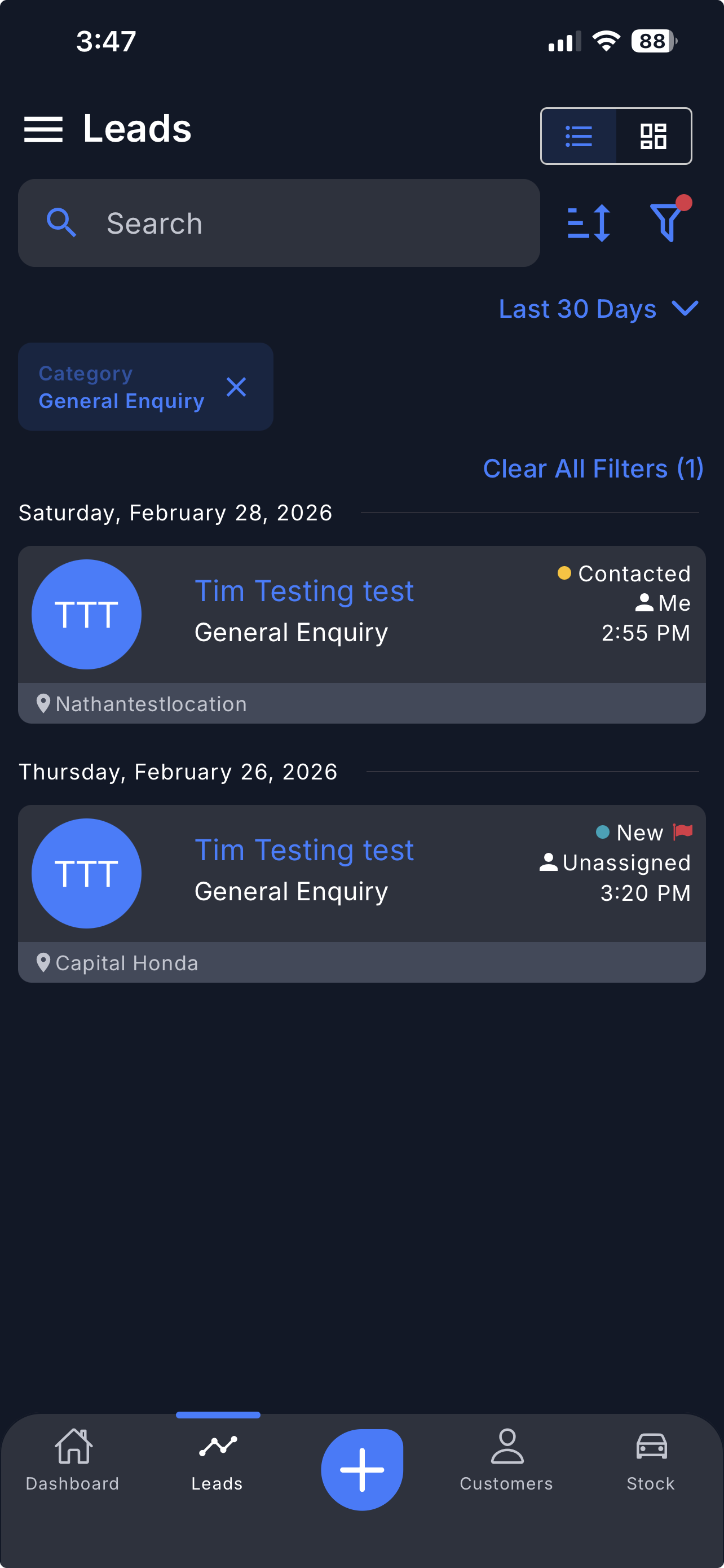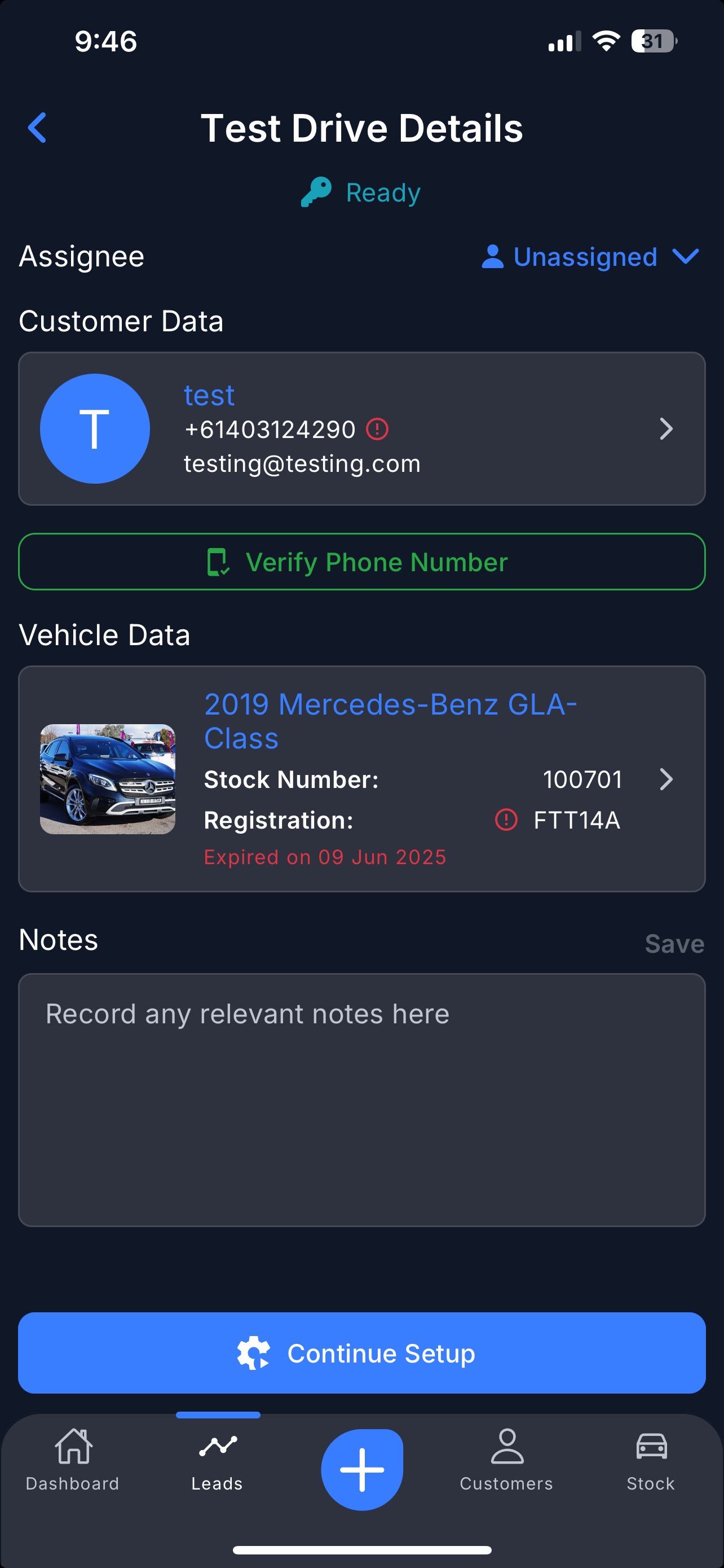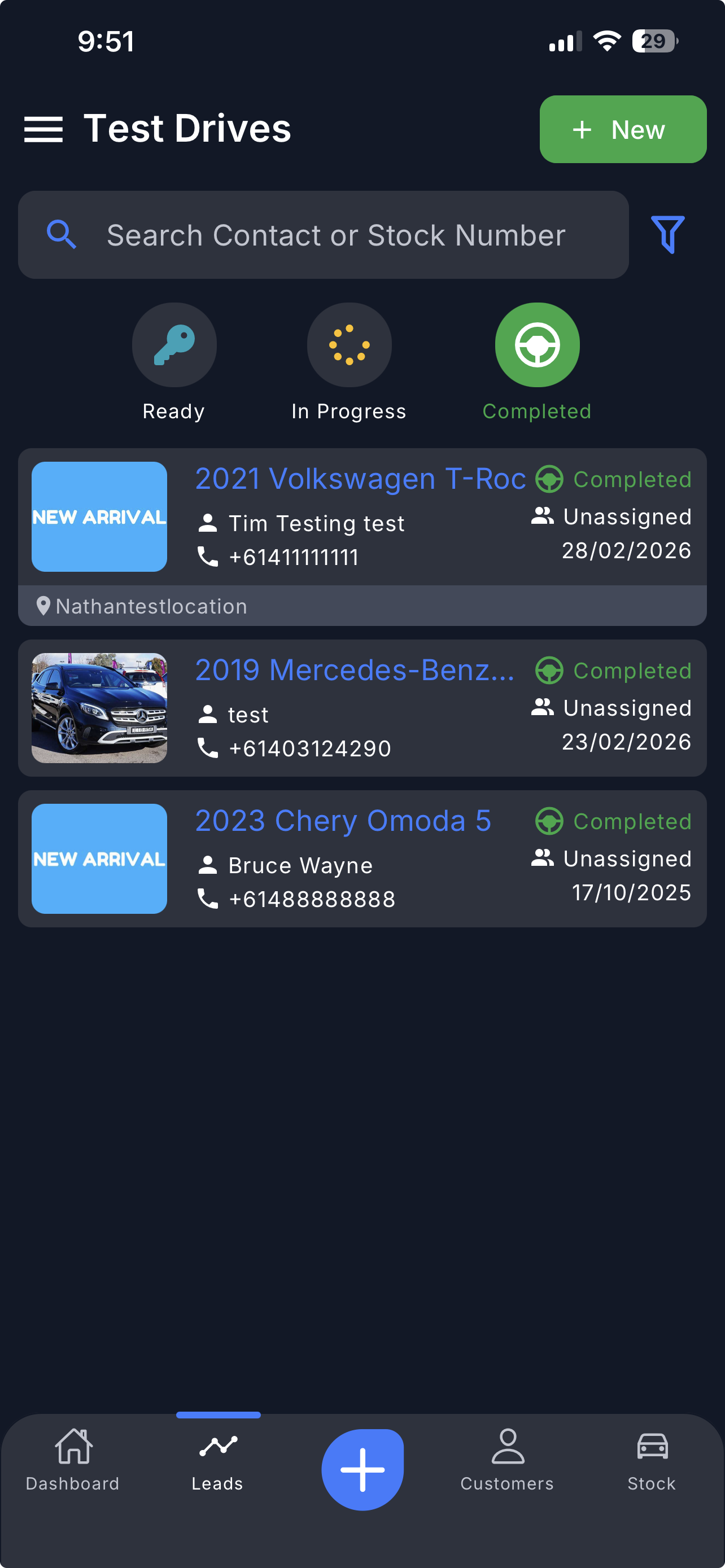 - In Leads, tap the sidebar menu icon on the top left corner, then select Test Drives to view all test drives.