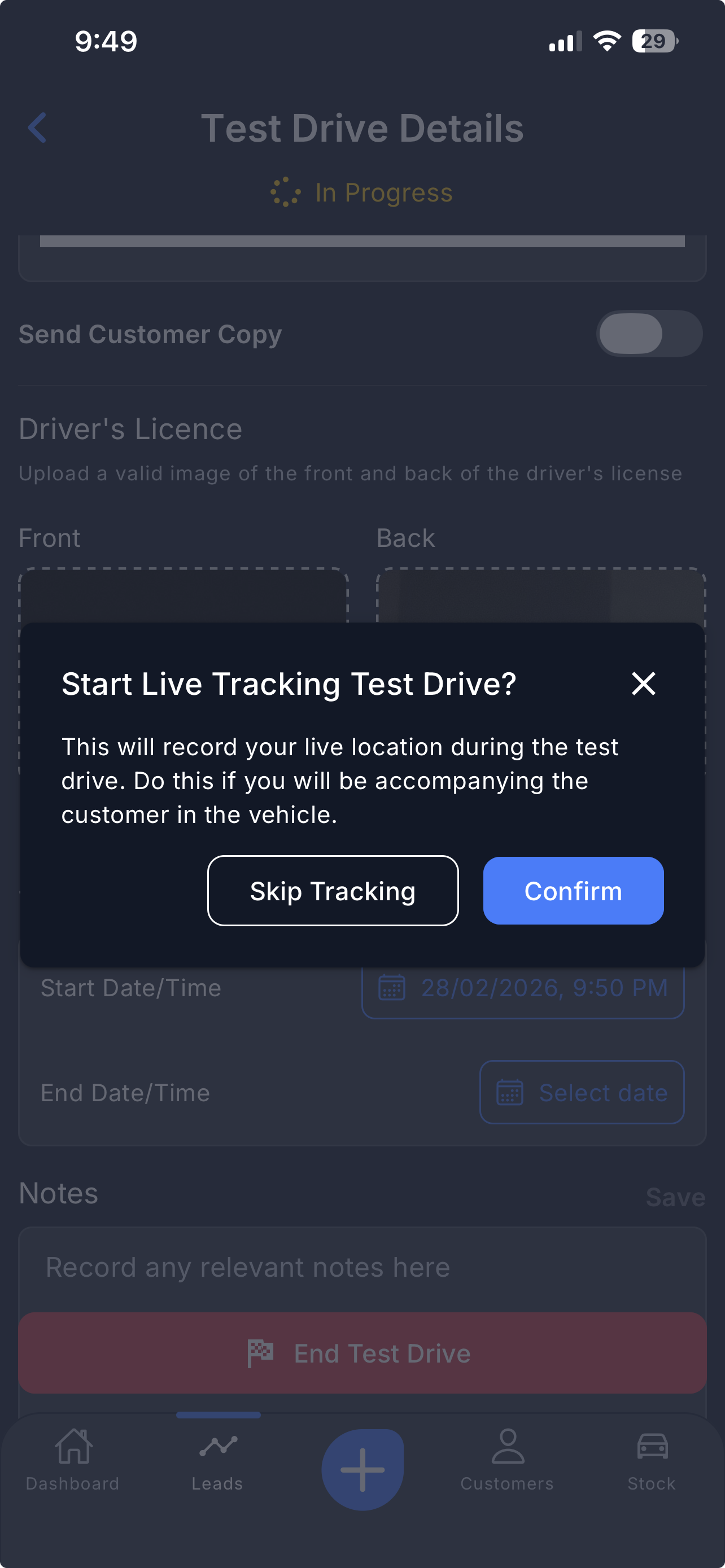 This article explains how to launch a Test Drive using the Dealer Studio mobile app, including how to set up insurance, capture a customer agreement, add a driver’s licence, and track the test drive in real time using Live Location Tracking.
