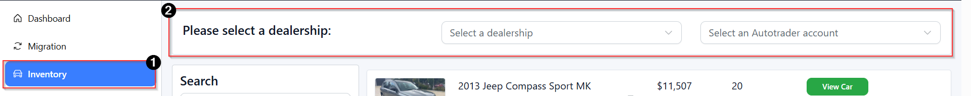 This guide explains how to navigate the Inventory Dashboard in Dealer Studio for Autotrader. The dashboard allows you to search by Autotrader account, dealership, filters, and vehicle information