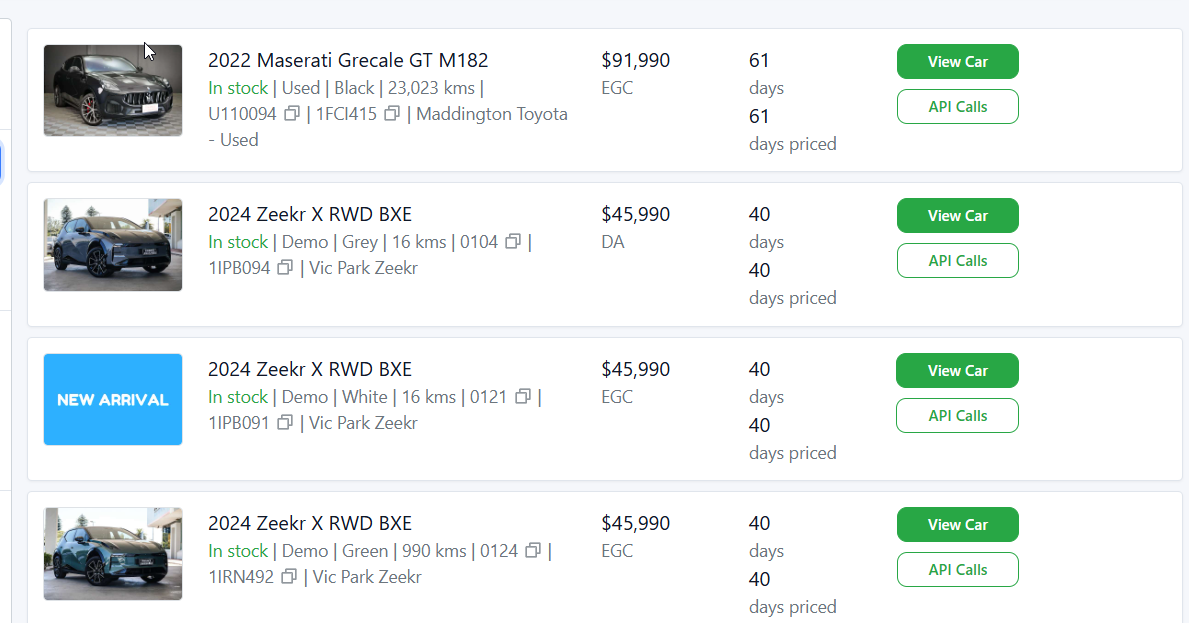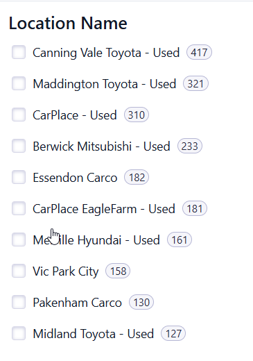 Some dealerships have multiple locations—this search will show all stock under that dealership.
