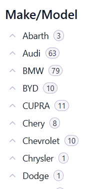 Filtering vehicles by price, source, body type, and other attributes