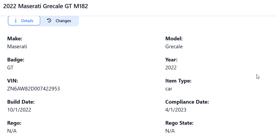 Viewing vehicle details and change logs