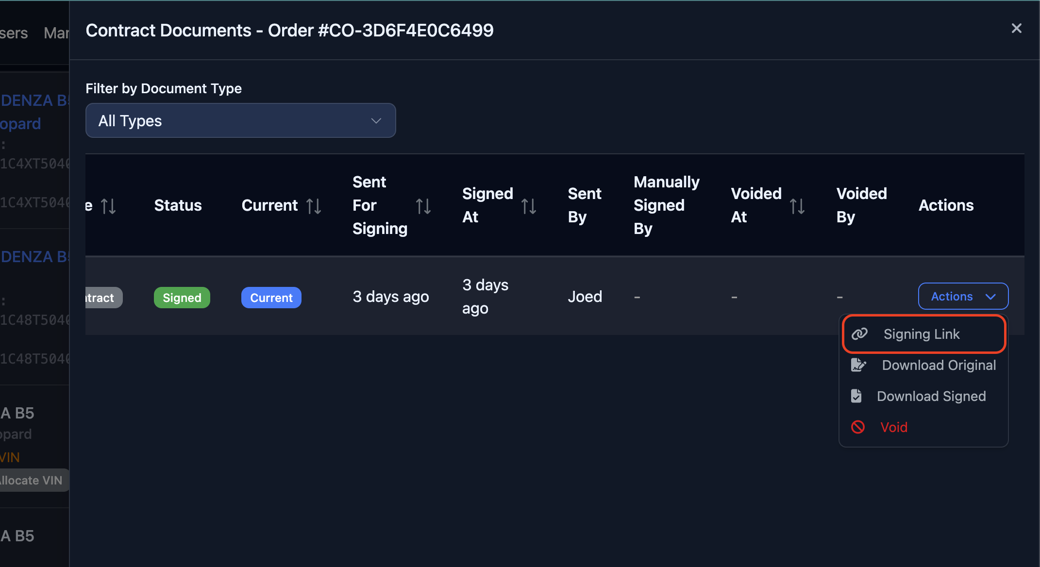 Select “Signing Link” from the dropdown options.