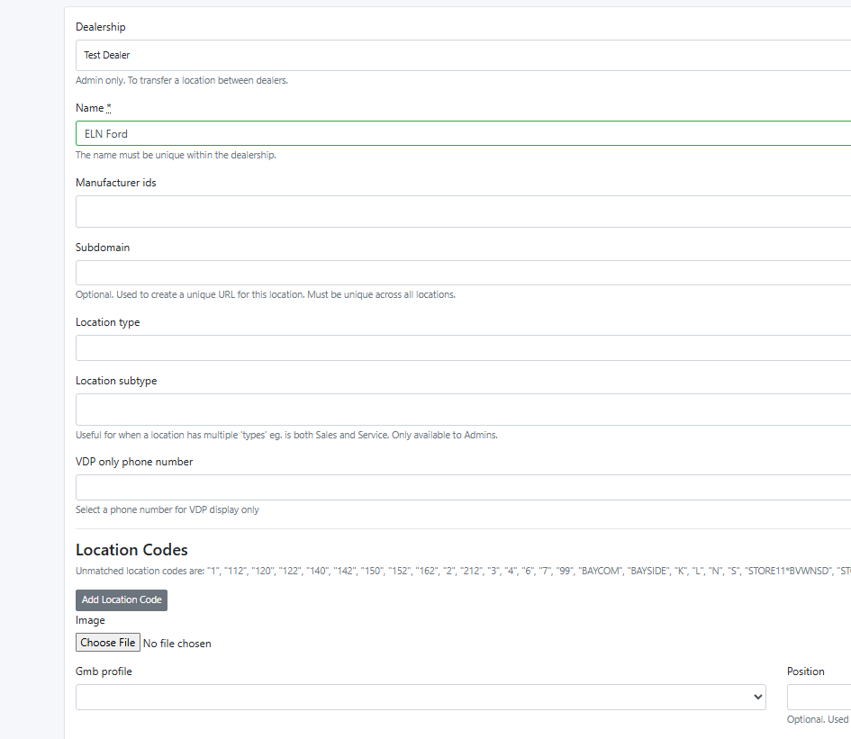 - This page will display all locations associated with your dealership.