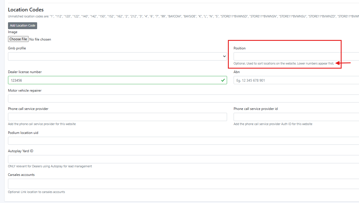 The Position field controls the display order of locations on your website.