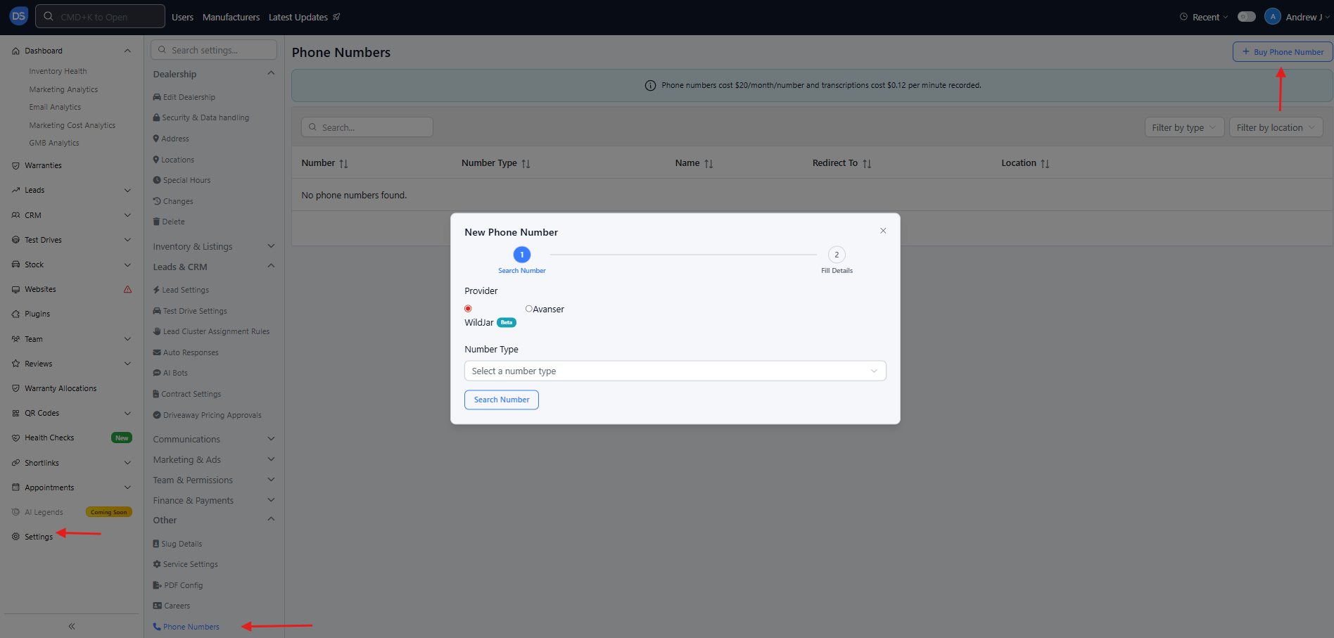- Name – A label for the number (e.g. Google Ads – Sales, Facebook – New Cars).