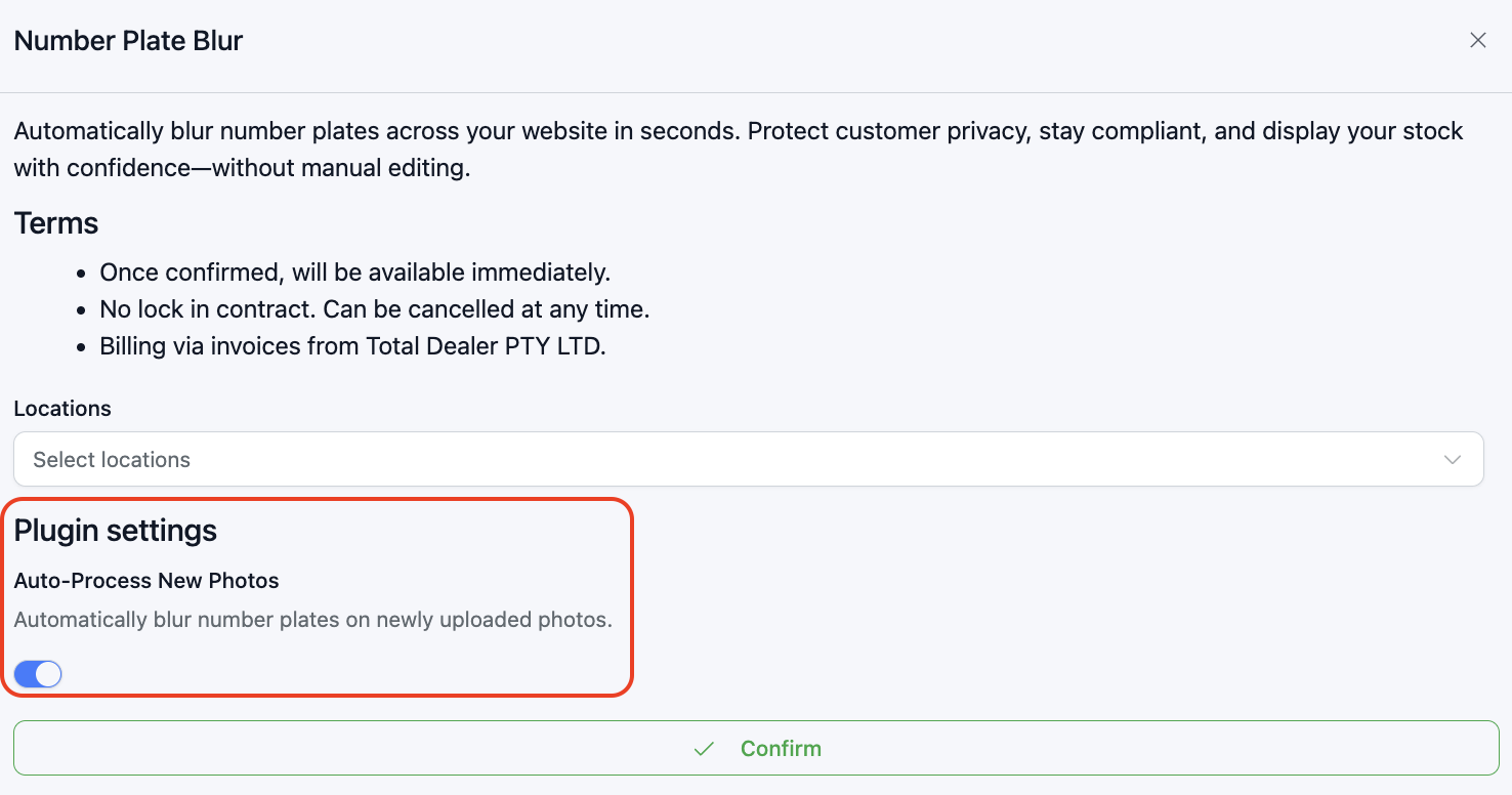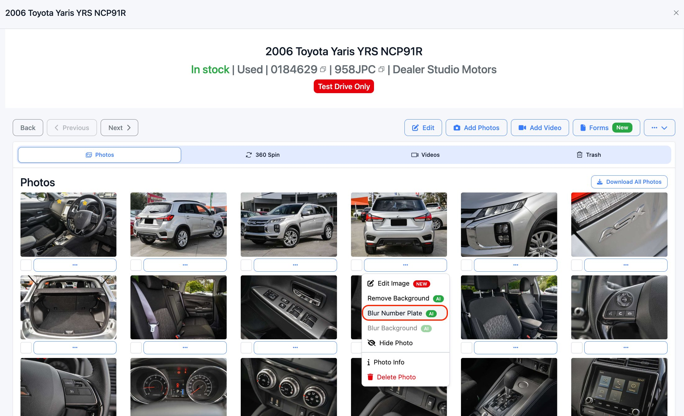 Dealer Studio's Number Plate Blur plugin uses AI to automatically detect and blur number plates in your vehicle listings. This helps protect privacy and keeps your listings looking professional without any manual editing required.
